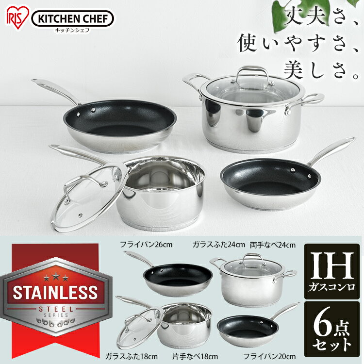 フライパン 6点セット ステンレスパン SP-SE6送料無料 なべ ステンレス 料理 調理 炒める 耐摩耗性 調理器具 キッチン 丈夫 長持ち ガス 直火 アイリスオーヤマ