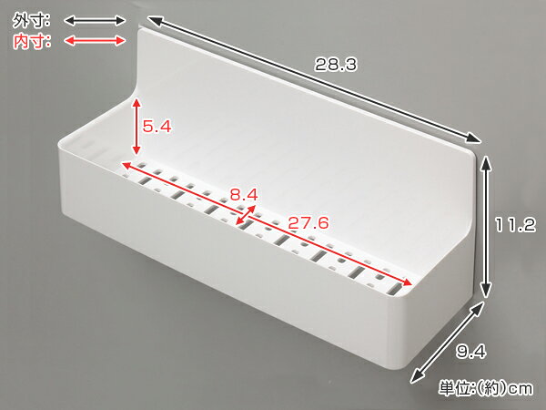 サイズ約 幅28.3×奥行9.4×高さ11.2(cm)重量:約448g内容量1個材質ABS樹脂、ゴム磁石生産国ベトナム製備考耐荷重:約2.4kg※タイル、木、大きな凸凹もある壁、ガラス、鋼板を使用していない浴室壁面には使用できませんので、浴室の壁に磁石が付くかご確認ください。